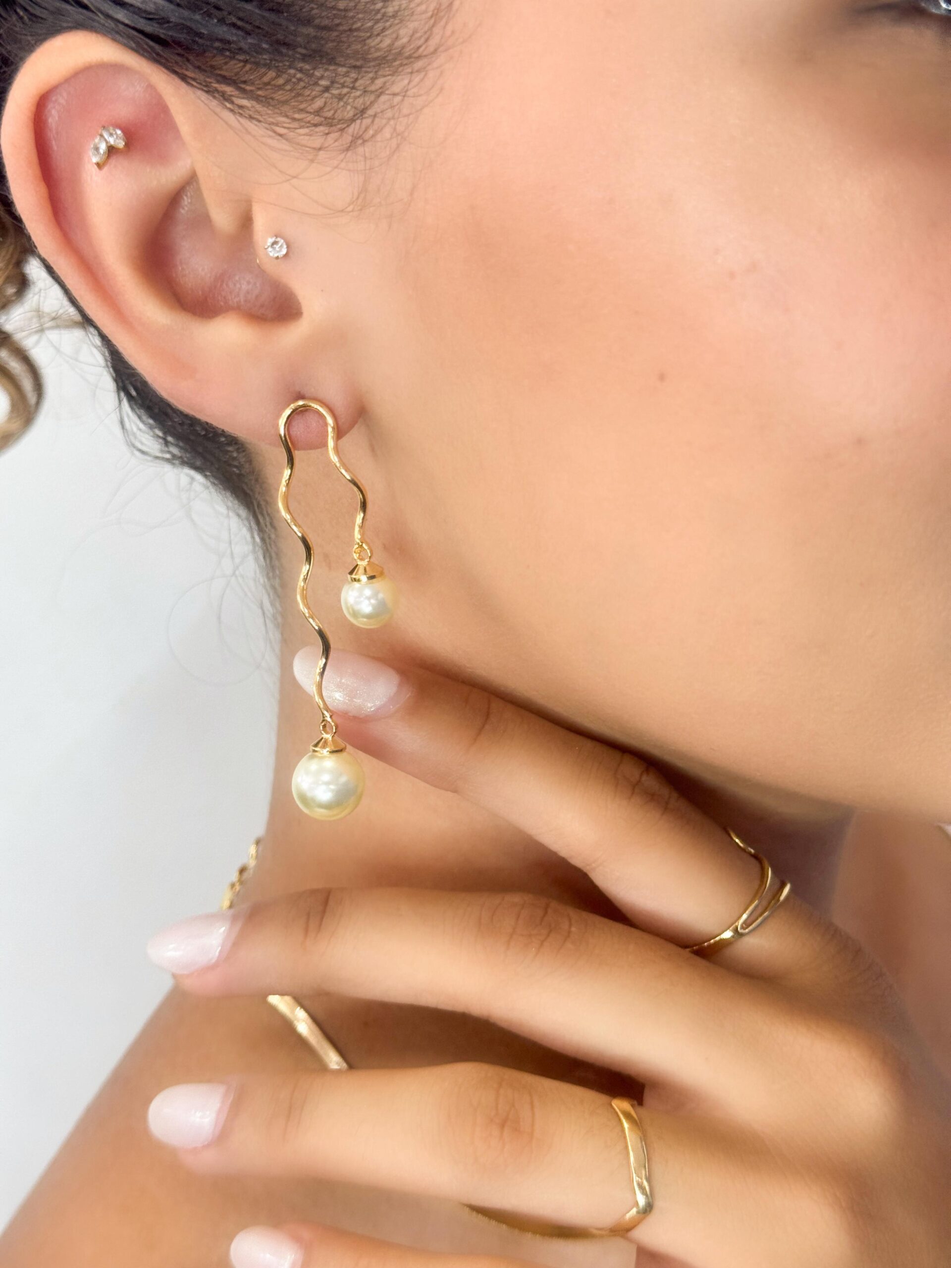 Brinco ondulado com pérola